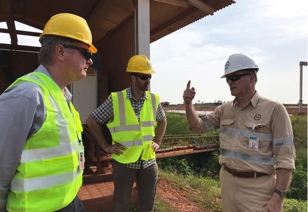 L’ambassadeur Fitrell lors de sa visite à Kamsar et Boké en 2019 avec l’ambassadeur de l’époque, feu Simon Henshaw.