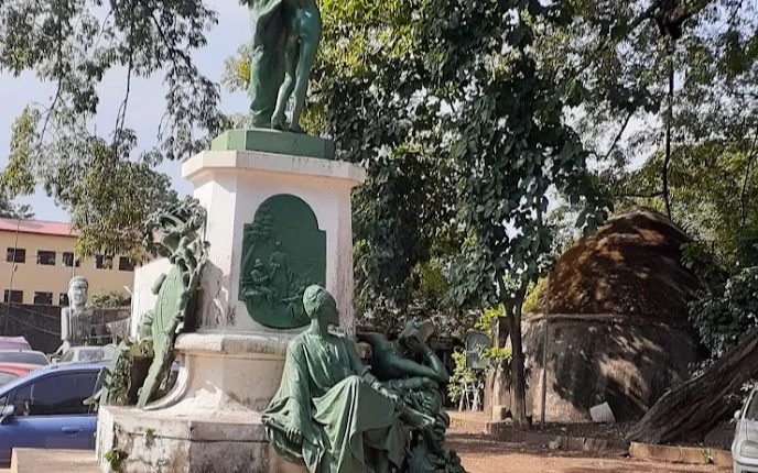 La vaste cour du Musée national de Guinée renferme  des monuments historiques des hommes et des femmes qui ont marqué l’histoire du pays à une époque de son évolution.