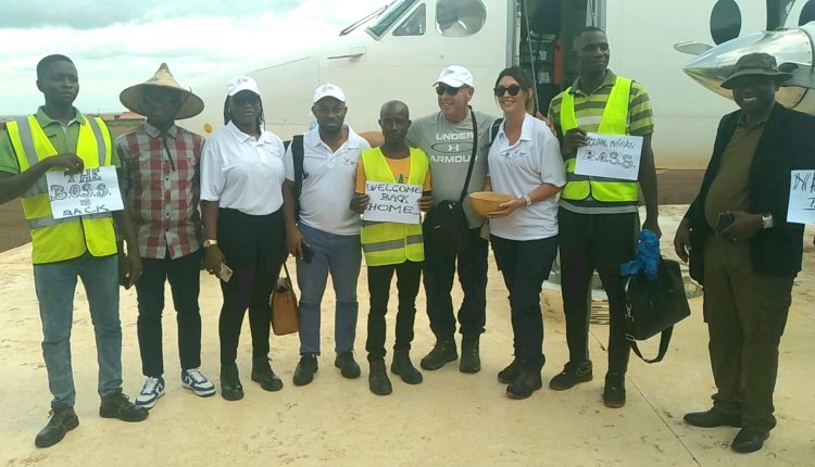 Le Président Directeur général du 79th Group a conduit ce jeudi 15 juin à Siguiri une importante délégation de sa compagnie. Aussitôt descendu de l’aéronef qui était affrété pour ce déplacement, Webster David Gary, le patron du 79th Group, a expliqué à la presse l’objet de sa mission à Siguiri.