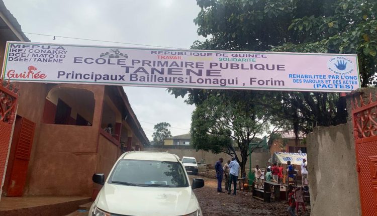 L’école primaire Tanènè, contiguë à la cour du camp Alpha Yaya Diallo, a été rénovée grâce à l’initiative de l’ONG « Des Paroles et des Actes » (PACTES), sur financement de la LONAGUI. L’inauguration officielle de cette école rénovée a eu lieu le samedi 28 octobre 2023, en présence des responsables locaux.