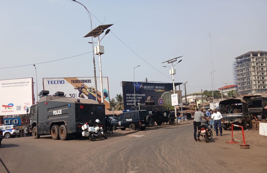 Ce lundi 6 janvier 2025, jour de manifestations initiées par les Forces Vives de Guinée (FVG), un important dispositif sécuritaire est déployé le long de l’axe allant du rond-point de la Tannerie à Madina.
