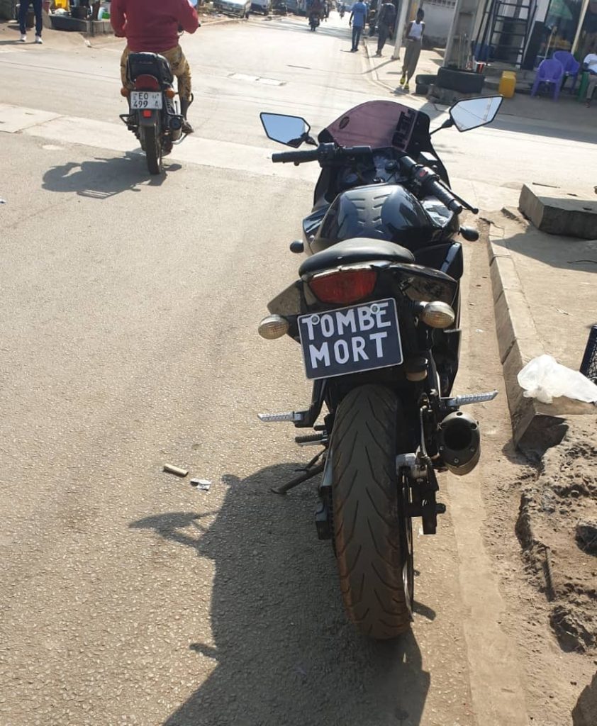 En dehors de cela, tout ce qu’il met d’autre sur la plaque arrière de son deux-roues, fait de lui un usager en infraction, donc punissable. Cela, même s’il écrit ‘’PARADIS’’ (un mot agréable, apaisant et souhaitable), en lieu et place (de ‘’TOMBE MORT’’ (tout le contraire du premier).