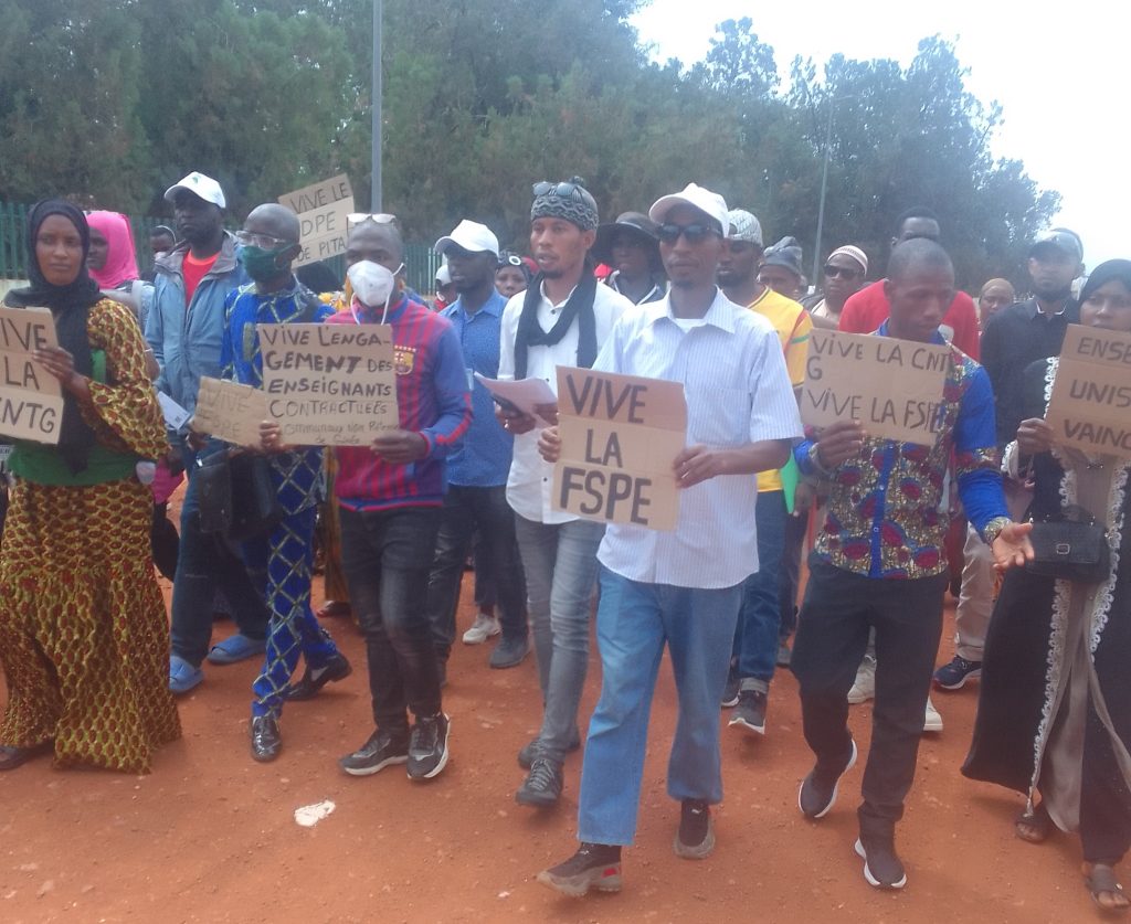 De la Maison des Jeunes, ils se sont rendus à la Direction Préfectorale de l’Éducation (DPE). Là, ils ont été reçus par le Directeur Préfectoral de l’Éducation. Tout au long de leur marche, ils scandaient des slogans tels que : « Vive la CNTG ! Vive la FSPE ! Vive l’école guinéenne ! Vive l’éducation ! »