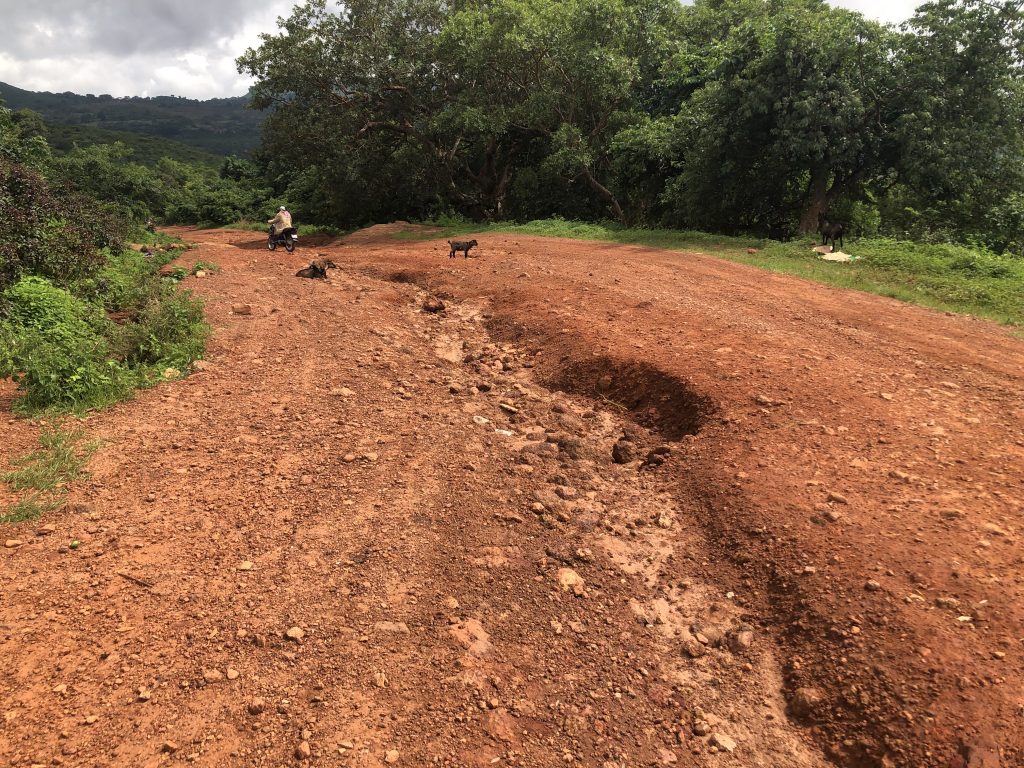 Long d’une cinquantaine de kilomètres à partir de Popodara, cet axe stratégique est aujourd’hui criblé de trous béants, de fossés et jonché de roches. En cette saison des pluies, il devient de plus en plus impraticable. Le décor est désolant, presque apocalyptique.