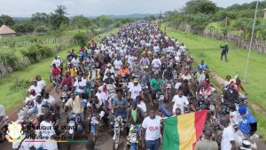 Ce mardi, 22 juillet 2025, la mission gouvernementale s’est rendue à Koundara. L’entrée dans la commune urbaine s’est déroulée dans une ambiance proche de celle observée à Gaoual : cortège de motos, banderoles locales, slogans appelant au vote. Là encore, les teeshirts « OUI à la nouvelle Constitution » étaient visibles dans la foule. Les autorités préfectorales ont accueilli la délégation avec honneur avant un échange public.