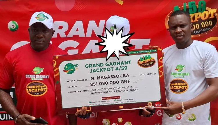 Avec une mise de seulement 20.000 francs guinéens, la chance a souri à un jeune taxi motard en vacances à Siguiri. Il est reparti avec la somme impressionnante de 851.080.000 GNF grâce au jeu Jackpot 4/59 de la LONAGUI.