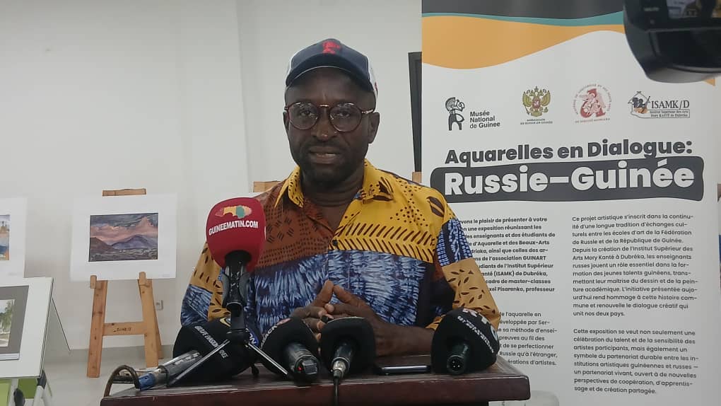 L’exposition est le fruit d’une série d’ateliers organisés en novembre 2025 à Conakry et à Dubréka, avec le soutien de l’Ambassade de Russie en Guinée. Dirigés par Alexey Pisarenko, enseignant à l’Académie d’aquarelle et des beaux-arts Sergueï Andriaka, ces ateliers ont réuni des étudiants de l’Institut supérieur des arts Mory Kanté (ISAMK) et des artistes guinéens professionnels.