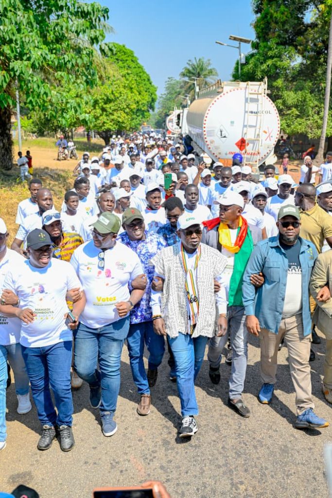 À Tormelin, il a remis 1 500 t-shirts et une enveloppe de 20 millions de francs guinéens au directoire sous-préfectoral de la GMD, accompagnés d’un appui logistique destiné à renforcer l’efficacité de la campagne. Devant une foule mobilisée, il a invité les citoyens de Fria à accorder leur confiance au Général Mamadi Doumbouya, présenté comme l’homme de la transformation, de la stabilité et du développement inclusif.