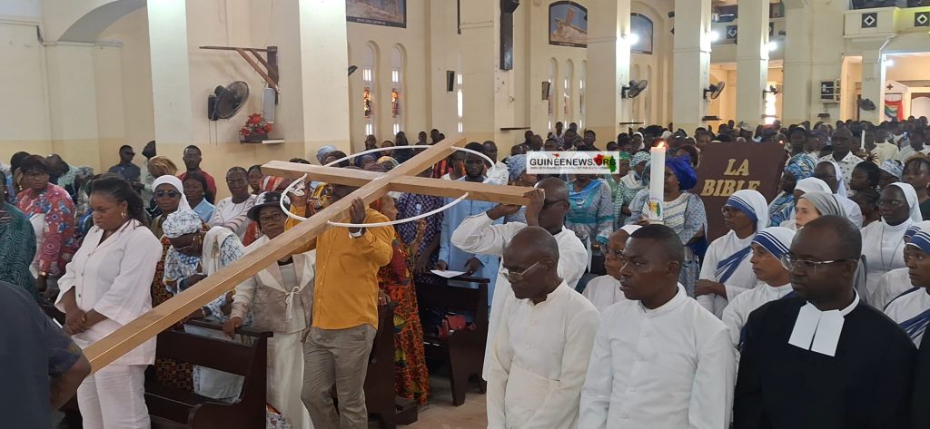 Cette célébration nationale a été marquée, dans chaque diocèse, par une messe solennelle, symbole d’un héritage spirituel transmis depuis un siècle et demi. À Conakry, l’élan jubilaire a débuté dès la veille. Le samedi, les fidèles ont récité le chapelet dans les jardins de l’archevêché avant d’entamer une marche de foi dans les rues de Kaloum, croix et Bible en main. Partie de l’archevêché de Conakry, la procession s’est achevée à la cathédrale Sainte Marie.