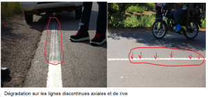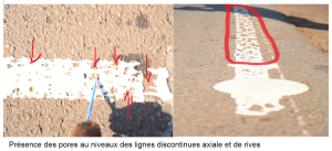 L’existence des traces de peinture sur la chaussée (bavures) à plusieurs niveaux.