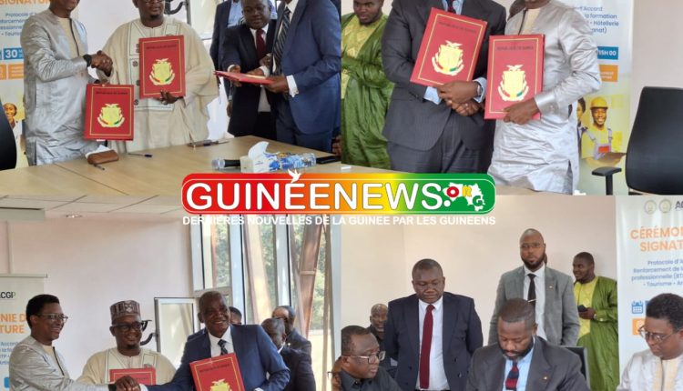 Ce partenariat stratégique associe notamment le ministère de la Culture, du Tourisme et de l’Artisanat (MCTA), l’Administration et Contrôle des Grands Projets (ACGP) et la Fédération patronale du tourisme et de l’hôtellerie de Guinée (FEPATOUR). Il vise à renforcer la formation dans des secteurs clés comme le BTP, le tourisme, l’hôtellerie et l’artisanat, en lien direct avec les réalités du marché de l’emploi.