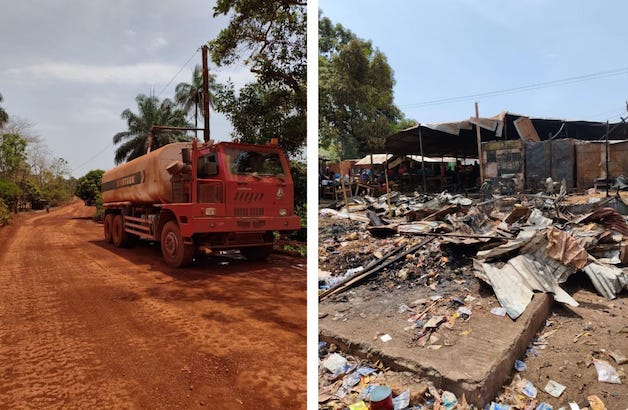 L’alerte a été donnée aux environs de 22h par des riverains, alors que les flammes commençaient à consumer plusieurs conteneurs de marchandises et des machines de transformation agricole. Face à la violence du brasier et à l’absence de services de secours immédiats dans cette zone rurale située à 35 km de Kindia, le concours de la compagnie minière RUSAL/CBK voisine a été décisif.